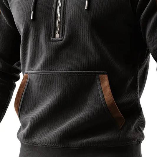 Men's Retro Contrast Faux Suede Polar Fleece Half-Zip Pullover Hoodie MTA0976J9X