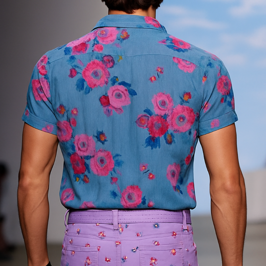 【24-hour shipping out】Men's Retro Casual Mesh Printed Floral Lapel Short Sleeve Shirt MTA1435D2TO
