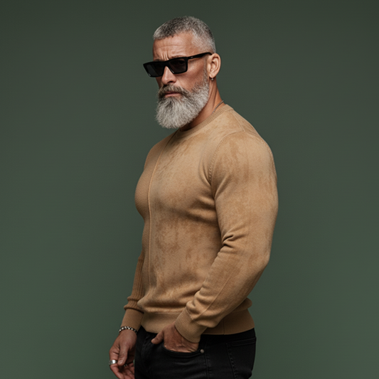 Men's Classic Casual Knit Ribbed And Faux Suede Slim Fit Crew Neck Sweatshirt MTA0825K4K