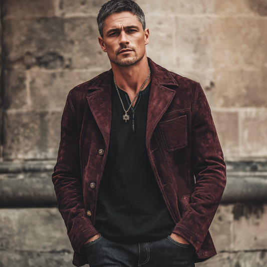 Men's Classic Dark Red Button Suede Jacket MTA0829K2U