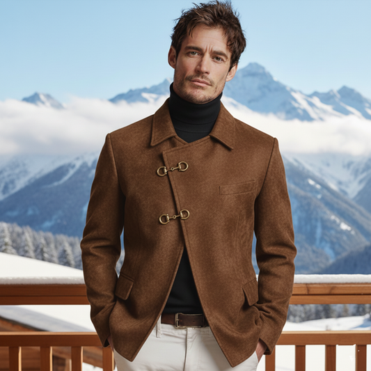 Men's Classic Retro Lapel Slanted Placket Metal Buckle Faux Suede Jacket MTA0816K2K