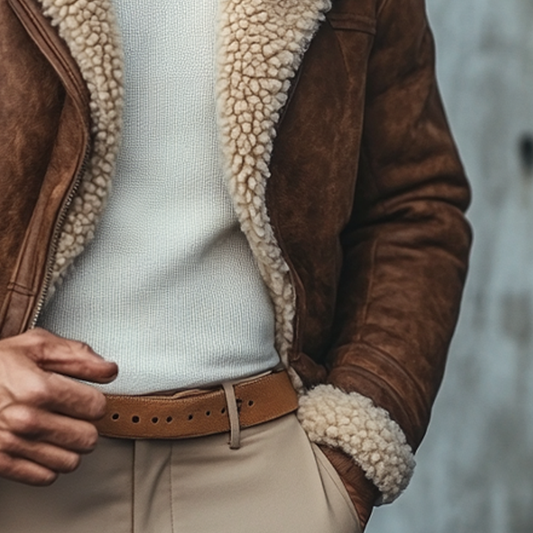 Men's Retro Lapel Zipper Breast Pocket Suede Jacket 01953047Z
