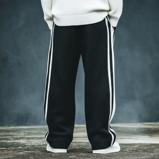 Men's Classic Color-blocked Striped Loose-fitting Knit Trousers MTA0857K7U