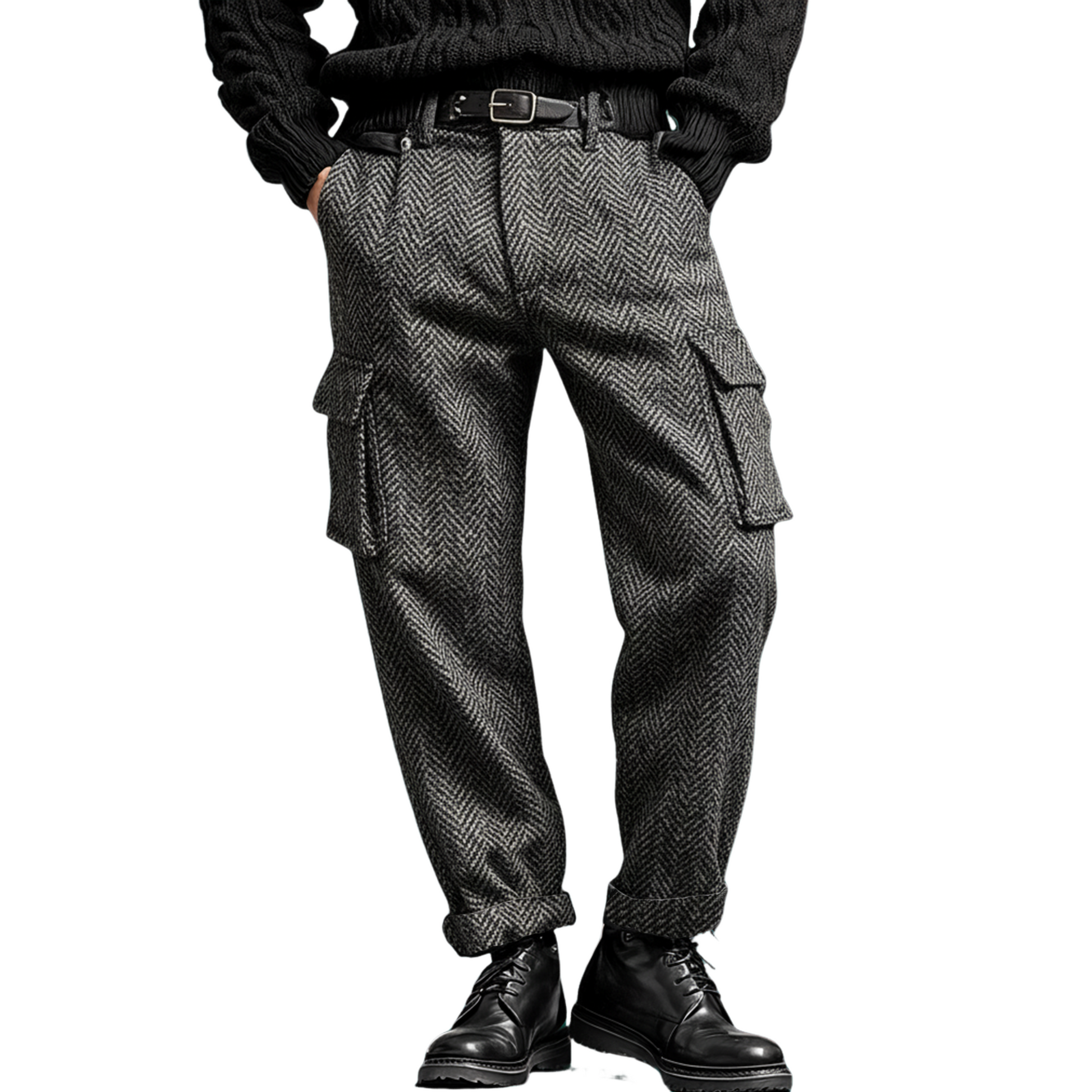 Product Name: Men’s Classic Casual Faux Herringbone Wool Cargo Pants