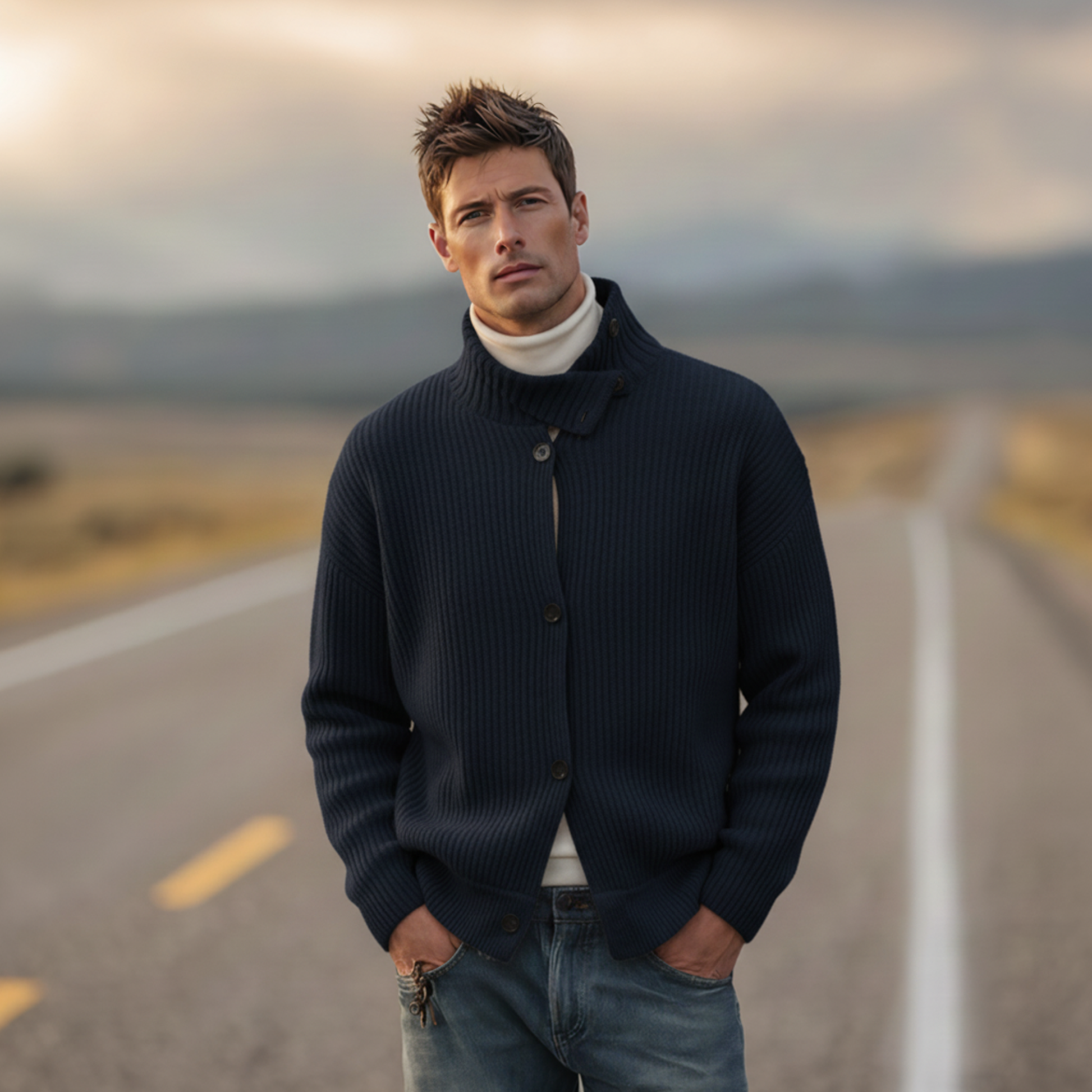 The Men’s Classic Retro Stand-up Collar Single-breasted Knit Cardigan offers a refined layering piece that blends vintage-inspired details with modern comfort. Featuring a stand-up collar, a clean single-breasted front, and a textured knit, this cardigan provides warmth, structure, and timeless charm for casual to smart-casual outfits across transitional seasons.